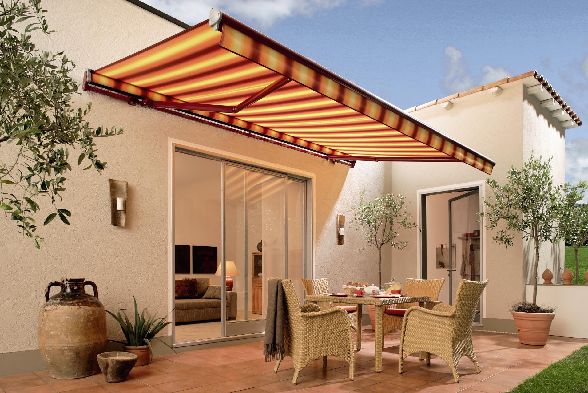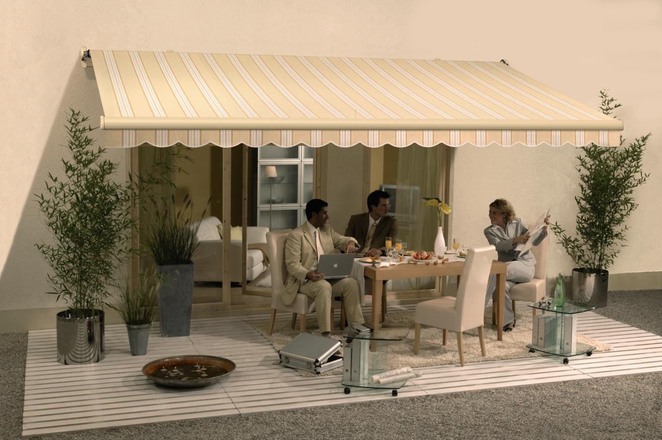 Die offenen Gelenkarm-Markisen erzeugen ein sommerliches Wohlfühlklima im Freien, als universell einsetzbarer Schattenspender.