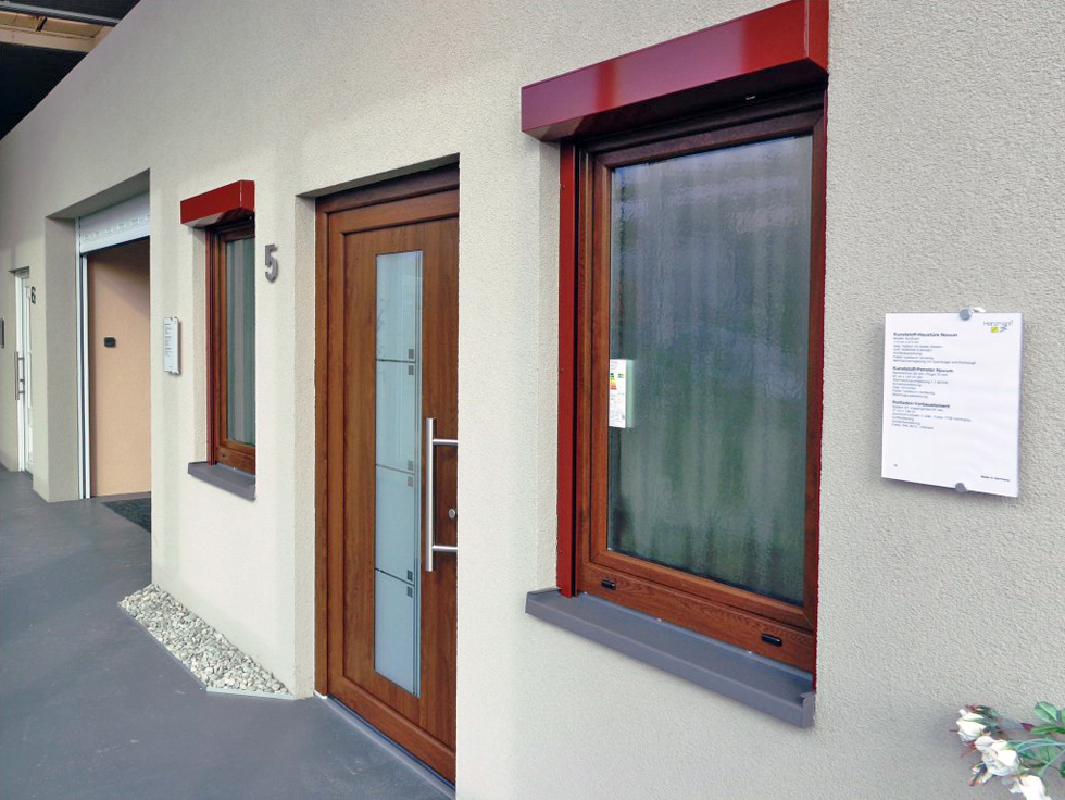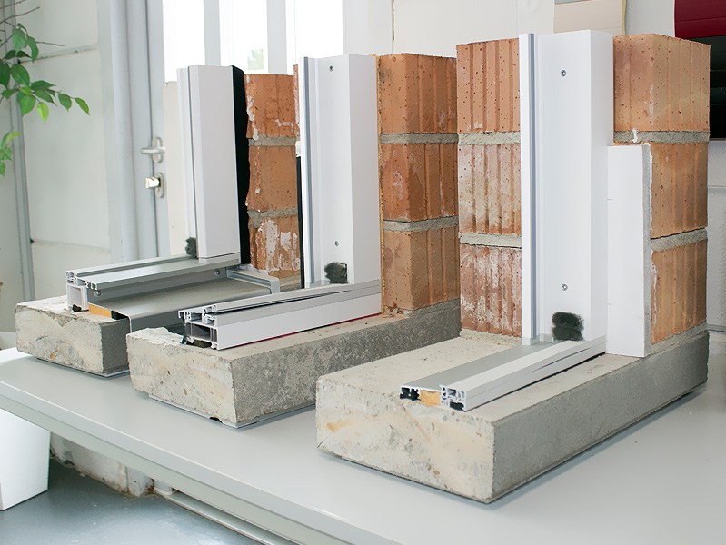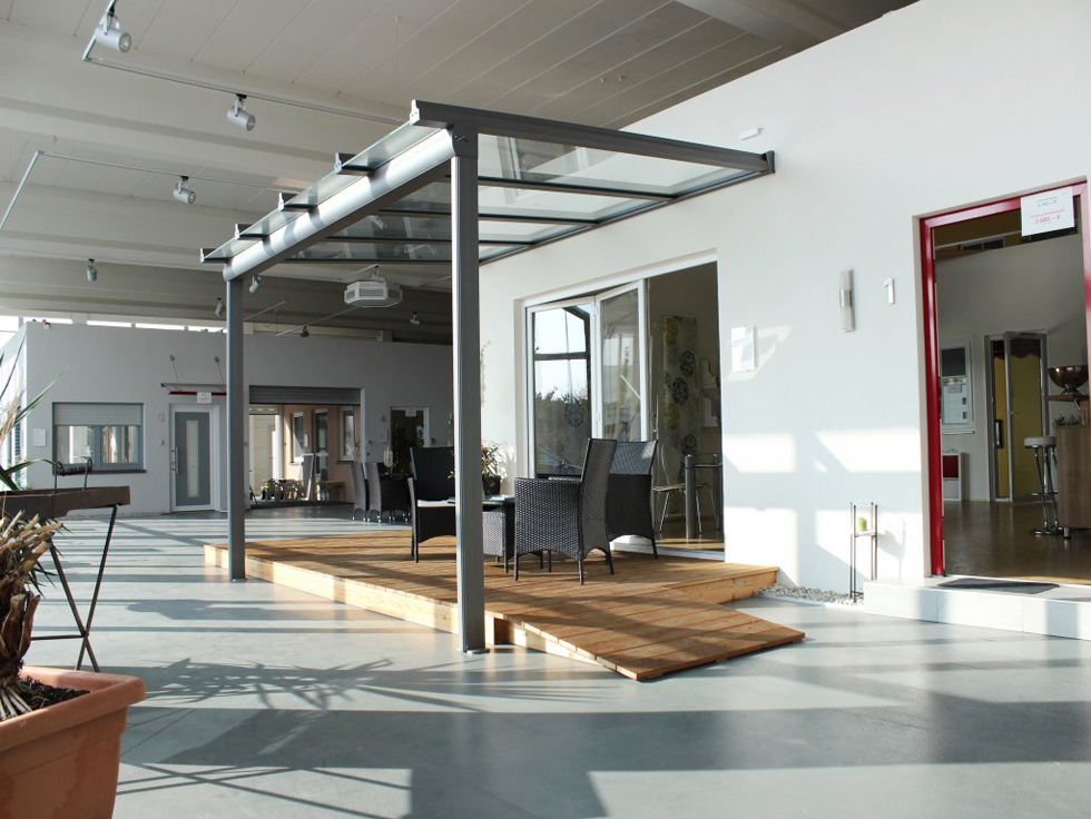 Dafür wurden sowohl die Rückwand, wie auch zwei eigenständige Gebäude im Inneren der Halle so ausgestattet, dass sich jeder Besucher ein Bild vom tatsächlichen Einbauzustand seines Wunschobjektes machen kann.