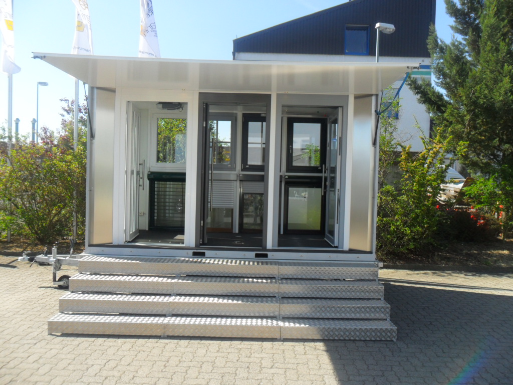 Der Trailer selbst ist wahlweise auf dem Fahrgestell per Metalltreppe begehbar oder er läßt sich getrennt vom Fahrgestell ähnlich einem Container per Stapler auf einer geeigneten ebenen Fläche abstellen und ermöglicht so einen ebenerdigen Zugang. Wenn Sie sich diese Verkaufsunterstützung gerne ausleihen möchten, melden Sie sich bei uns oder nutzen Sie die Online-Reservierung auf unseren Fachhändlerseiten.